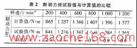 表2为转筒式电涡流缓速器制动力矩试验值与计算值。由表2可知,制动力矩试验值与计算值误差很小,最大误差为3.4%。
