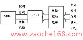 点火和喷油信号是汽车发动机中的关键信号,其周期和时序直接关系到汽车的运行状态,因此监测它们的周期和时序尤为重要。本系统监测原理图如图6所示,对于点火信号的监测,主要是监测它与CPS信号的同步,以及两个或四个点火信号之间的时序关系。当CPLD寻找到点火信号与CPS同步的起始点后,根据输入的PIP_IN信号,对各点火信号进行计数。每当一个点火周期完成后,在下一个点火周期向ARM 单片机产生一个中断信号。该中断信号触发ARM 单片机进入中断处理程序,在该中断程序中,ARM单片机读入对各点火信号的计数值,判断点火信号的时序和周期,并设置点火信号正常与否的标志。对于喷油信号的监测,主要是监测它与CPS信号的同步,以及它们之间的时序关系。当PIP_IN信号中四个喷油信号中任何一个信号的下降沿到来时,CPLD都会监测其它三个喷油信号的状态,如果其它三个喷油信号的状态正常,即给出喷油信号正常标志,反之给出喷油信号异常标志。