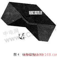 其中,压阻式压力传感器主要是利用半导体的压阻效应,把一个惠斯通电桥做在一个硅杯上,如图4所示。当硅杯受到压力后发生形变,惠斯通电桥的四个桥臂电阻就会发生变化,打破了电桥的电平衡,从而会有一个电信号的输出。