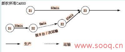 如图2所示,从Z1到Z3装配时间为60min,而D1点较Z1点提前60min获得排序信息,所以D1到Z3的产品生产周期必须小于120min,而Z2到Z3的生产时间为45min,所以从D1到Z2的生产(即动力总成分装完成送到Z2工序)时间必须小于75min。 在排序生产前主要采取同一品种批量装配的方式进行,而排序后要求型号切换频繁,这样增加了操作及员工识别的难度。为此,每台产品从上线开始就挂上产品型号识别卡,通过现场的改善(设备、工具)提高多品种机型作业的节拍均衡,同时,加强标准化作业、提高操作人员的操作技能以及优化人员配置等措施也提高了生产的效率,保证了生产节拍的需求。 结论 排序生产必须由及时稳定的物料供应来实现,除了要得到总装厂的生产信息,还要及时地得到过程变更、意外停线和生产时间变更等信息,这就要求在生产中注意信息的及时传递。 奇瑞公司发动机厂动力总成线采取排序生产后,降低了动力总成线的库存,减少了中转料架及过程质量损失,实现一个流的生产。所带来的改善具体表现为: 动力总成降低至零库存,减少了总成料架;取消了库存区,提高了工厂空间利用率,避免了产品来回运输,减少了1名运输人员;生产和物流链实现了一个流的生产,减少了过程的浪费。 |