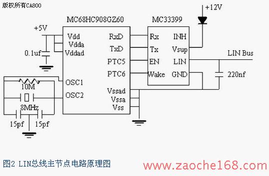 LIN总线主节点电路原理图如图2所示。
