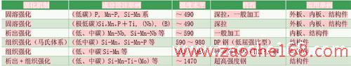 依据钢板的强化机制、强度水平和组织特点可划分为不同的钢种类型(见表)。