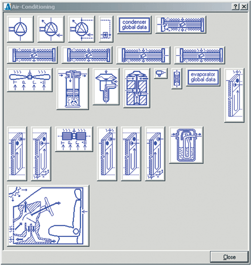 在车辆空调系统中,AMESim可以解决下述典型问题:确定系统零部件的尺寸、研究空调系统对发动机热管理系统的影响、测试新制冷剂和新的材料性能、预测制冷系统中任何一处的状态变量的瞬变过程(温度、压力、制冷剂流量和干度等)。