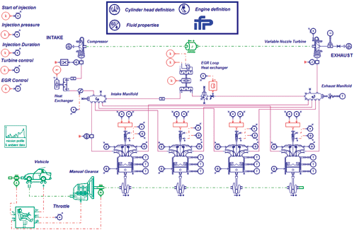 此处的关键特点是预先建立的随时可用的模型,如三效催化转化器、HC(碳氢化合物)、NOx(氮氧化物)分离器、氧气存储器、柴油氧化催化、柴油微粒过滤器模型等。IFP排放库还提供了经过验证的、用于建立尾气处理元件一直到完整热排放系统的各种模型。