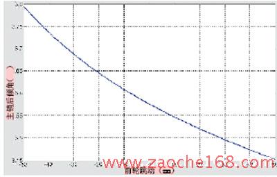 图2 前轮上下跳动对主销后倾角的影响