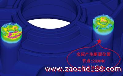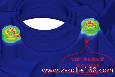 经过与试验工程师讨论,确认在实际路试时,同一凸台曾先后断裂4次,最严重的情况是在装配打螺栓扭力时凸台就出现断裂现象。根据以上分析判断凸台断裂原因存在以下可能性: