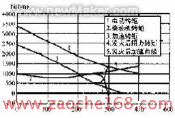 柴油机起动过程是否点火,可以采用转矩随转速的变化而定,东风4型机车阻力特性实验实侧的运动阻力转矩、电机驱动转矩、加速转矩与电机转速的关系如图3 所示。