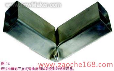 薄壁铝挤压制品准静态三点式弯曲度测试的配置。
