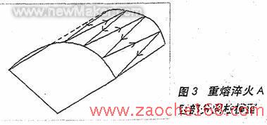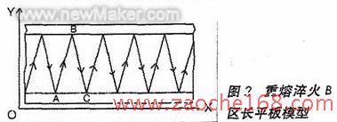 本文建立在重熔淬火温度计算模型基础上,利用MatLab工程软件,通过计算机仿真手段改变影响淬火温度变化的各参数来分析氩弧重熔淬火这一热处理过程。重熔淬火温度模型的建立凸轮轴由于其工作条件及结构特征,淬火区域一般分为如图1所示的A、B两区,由于A、B两区的形状差异较大,同时淬火后对A、B两区重熔层的质量检验标准不同,故而在课题研究中,把B区重熔淬火过程近似简化为如图2,长平板的重熔淬火过程;A区外轮廓和圆弧极为相似,用如图3所示的部分圆柱模型来模拟A区淬火过程。