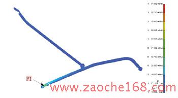 图7显示p1点的等效应力最大,达到174.5MPa,小于材料的屈服极限。但若考虑疲劳破坏,该处仍是比较危险的。