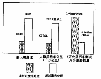 (1)未经处理的汽缸与经过激光处理后的汽缸汽车跑车数据对比见图1。