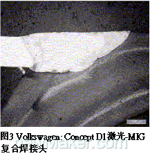 激光-MIG复合焊技术为汽车工业提供了一种全新的焊接技术,尤其是对于激光束焊无法实现或在经济上不可行的装配间隙较宽的焊接。它具有宽广的应用范围和高效的特性,同时减少投资成本、缩短了生产时间、节约了生产成本和提高生产率,具有更强的竞争力。
