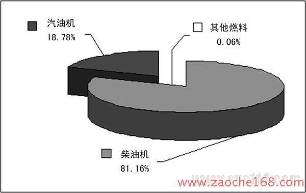 2008年度,我国柴油机市场延续多年的向着重轻两头发展的趋势没有改变,共销售重型柴油机582819台(其中配装重型货车106746台,配装重货非完整车辆239547台,配装大型客车36731台,配装大客非完整车辆5733台,配装半挂牵引车194062台),占车用柴油机总销售量的27.37%。中型柴油机共销售270858台(其中配装中型货车123523台,配装中货非完整车辆76643台,配装中型客车37985台,配装中客非完整车辆32707台)。占车用柴油机销售总量的12.72%。轻型柴油机共销售1276140台(其中配装轻型货车941382台,配装微型货车97771台,配装轻货非完整车辆95242台,配装微货非完整车辆14757台,配装轻客82201台,配装轻客非完整车辆44787台),占车用柴油机销售总量的59.91%。