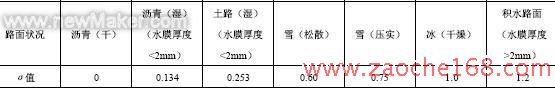 特别规定当路况因子值为1.2 时道路状况为积水路面(水膜厚度大于2mm)。