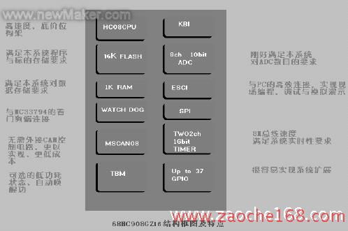系统微处理器选择MC68HC908GZ16,它的框图如下: