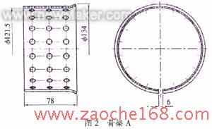 图1为汽车橡胶轴承的产品结构简图,产品要求骨架位置正确,产品致密性好,骨架与橡胶粘接牢固。产品外观质量好,胶边少。产品结构简图中的尺寸∮150mm和∮120mm为该产品的上要尺寸,图2为该产品的骨架A的结构简图。