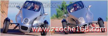 与Mercedes最近揭开的一种概念车F300 Life Jet作比较发现,虽然微小,这种智能型汽车似乎极其宽敞。乘车者坐在在前后纵向排列的两个座位里,前面两个车轮由铰链连接,车身坐落在此悬浮臂上,像摩托车一样,经由一种倾角控制系统控制转向端活动,并且车身前部可以斜靠进入边角。