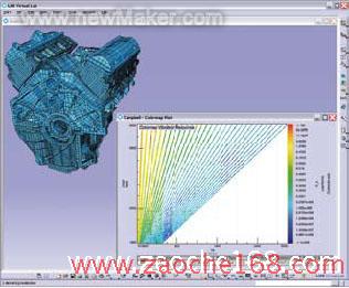 齿轮和链条仿真由于需要计算所有子装配的动态接触,所以需要花费大量的运行时间。动态多体仿真需要功能强大的求解器处理零部件之间的接触,因为这些接触处理不断地在每个仿真时间步重复。为了在下一个时间步中能够预测接触区域,LMS Motion中新的接触搜索算法可以预处理相互接触的部件外形,取代原有的部件段之间的接触搜索方法。搜索功能仅仅关注有限的接触区域,当处理典型的模型校准时,可以缩短一半的仿真处理时间,甚至更多。总之,不断发展的求解器技术得益于CPU处理器的大幅度改进,而LMS 第七版对典型的工业发动机链条模型的多体仿真速度提高了两倍多。另外,为了快速浏览设计优化参数,LMS公司在LMS Motion第七版中集成了NOESIS优化技术,减少了手工设置设计参数的麻烦,如图3所示。