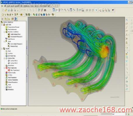 图2:在PRO/ENGINEER Wildfire环境下对进气管进行流体流动分析——EFD软件能够分析物理设计的变化
