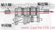 一般的手动变速器内设置输入轴、中间轴和输出轴,又称三轴式,另外还有倒档轴。三轴式是变速器的主体结构,输入轴的转速也就是发动机的转速,输出轴转速则是中间轴与输出轴之间不同齿轮啮合所产生的转速。不同的齿轮啮合就有不同的传动比,也就有了不同的转速。例如郑州日产ZN6481W2G型SUV车手动变速器,它的传动比分别是:1档3.704:1;2档2.202:1;3档1.414:1;4档1:1;5档(超速档)0.802:1。