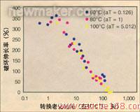 采用时间温度叠加,通过经验转化因素来生成总曲线(见图6)。