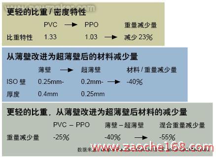 在成本方面,就原材料的价格,PPO还无力与PVC竞争。但Monroe相信以PPO的设计优点,能够解决设计层面的包装问题,从而简化了装配工序,使得成品车辆的重量得以减轻,这将会使安装和寿命周期成本得到实质性的下降。他说:“真正的关键在于这种材料可使电线的体积大为减少。”