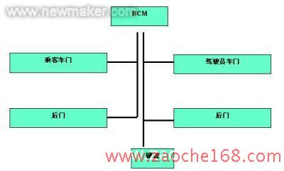 如前所述,通常BCM和四个车门通过一个CAN网络连接。这是目前大量生产商采用的典型方案。这时,每个车门内的高性能控制器(MCU),如常见的飞思卡尔HC908AZ60A, 直接控制车窗和车镜。
