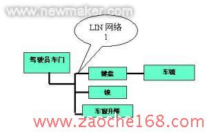采用LIN结构实现车门功能,就可以选择规格更小的MCU(如HC908GZ16),它除了能为BCM通信提供必要的CAN接口,还有足够的资源去控制单个LIN网络。在本例中,驾驶员车门MCU除了是BCM 的CAN 接口,还是控制后视镜、键盘、锁和车窗升降等操作的LIN网络的主节点。