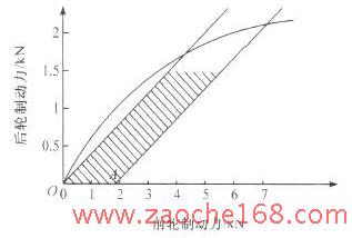 因此,分配后的前后制动力的曲线可以是落在如图3所示的阴影区域中的任意曲线,其中OA为电机的最大制动力。