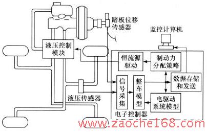 不管是哪一种分配形式,在实现上均要以液压制动力的灵活控制为前提,如果仅仅采用传统的液压制动系统,液压制动力与驾驶员的踏板力输入为固定的函数关系,则无法实现回馈制动力与液压制动力的灵活控制,更无法实现理想的制动力分配控制方案。