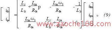 利用以上数学模型,可以得到考虑铁损的按转子磁场定向的矢量控制基本控制方程式为