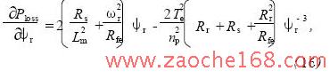 对于给定转速及转矩, Ploss是ψr 的凸函数,为寻求使损耗最小的最优磁链,对ψr 求偏导,即