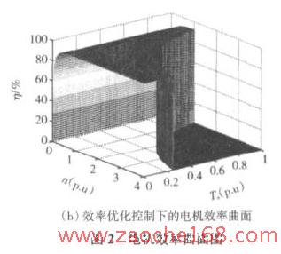 按照控制要求得到所需的idm和iqm ,由式( 9)求得对应的ids和iqs ,再通过电流滞环或其它方法控制电机的定子电流。图2分别给出了标准矢量控制和采用本文所述方法控制的电机效率曲面。从图中可以看出, 采用效率优化控制后轻载时的效率得到了明显的提高。
