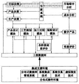 生产决策层 根据上层决策和技术资源等实际情况,在计算机上作出产品设计、工艺规划、加工装配计划,并在计算机上实现制造过程,生产出数字产品,即虚拟电控喷油系统。通过对数字产品的形成过程进行分析,作出成本测算,让用户进行综合评价。各个步骤是在统一的环境下协同工作,以求整体最优。