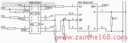 LIN总线的通信简单,方便,使智能电源管理系统与汽车的各系统之间既相互联系又相对独立,从而克服了目前电池管理的漏洞,能使汽车和汽车蓄电池的安全性和可控性得到大大的提高。图2为其具体电路,本设计中各个模块均包含该电路,以此实现信息共享和传输,本设计中实际通信波特率为1200bps。其中,pc817起到隔离作用,max1487保证收发信号在时间上错开。