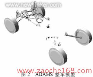 目前,人们已利用虚拟样机技术对工程中的大量问题进行了相应研究。本文利用多体动力学仿真分析软件ADAMS 建立汽车多体动力学模型,并在此基础上通过ADAMS/Vibration 模块对车辆模型进行模态测试。利用ADAMS/Vibration 振动分析模块,可以把不同的子系统装配起来进行线性振动分析,并可以通过ADAMS 后处理工具把结果以图表或动画的形式显示出来,包括绘制和动画显示受迫振动和频率响应函数,生成模态坐标列表及显示其它的时间和频率数据。