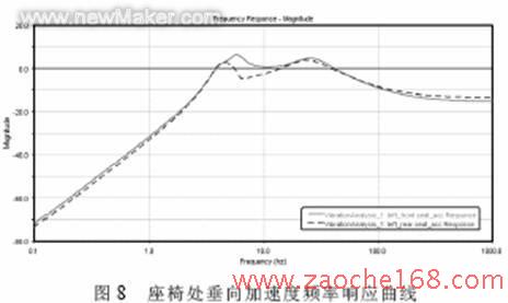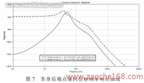 从上面两幅图中可以看出: 车身前后端点在外界输入分别约为5.5Hz 和5.0Hz 时频率响应函数达到最大值,高频输入的影响都是逐渐减小直至为零。不同的是前轮输入对车身前端点的振动影响较大,而后轮输入对车身后端点的振动影响较大,这点与实际生活经验非常一致。