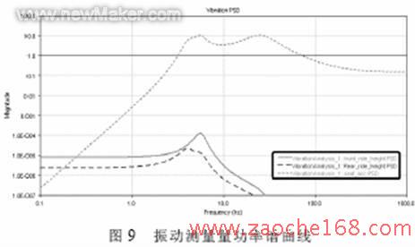 图9 给出了三个振动测量输出量的功率谱曲线。