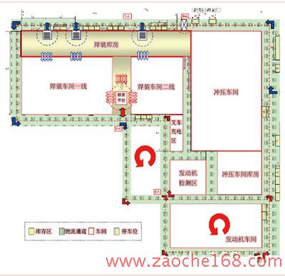 (2)在焊装库房内,对应和靠近生产线的地方修建卸货口,实现零件分车型就近卸货、归位存放。不但增加了卸货能力,而且还缩短了配送距离,彻底打破了物流“瓶颈”。