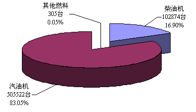 2009年1月份共销售柴油机102874台,环比下降8.27%;销售汽油机505522台,环比增长31.62%,其它燃料发动机305台,环比下降58.84%,2009年1月份各产品销量所占销量比例比12月份增减情况:柴油机-5.67%、汽油机5.77%、其他燃料为-0.10%。