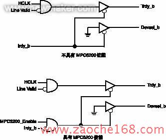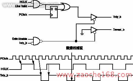 ---如果HCLK与PCIclk的比率为2:1,则PCIclk与接口逻辑的连接就没有必要。如果PCIclk与HCLK的比率为4:1的话(人们更期望这样),需要一个触发器来延迟和缩短PCI信号Trdy_b的持续时间。