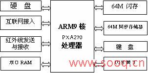 在众多的ARM核的生产厂家中,Intel生产的ARM9核的PXA270以其极高的运行速度、强大功能而在高端的嵌入式产品中使用的比较广泛,如个人数字助理PDA,智能手机,数字机顶盒等。 PXA270以其强大的功能作为本卫星数字机顶盒的主CPU。