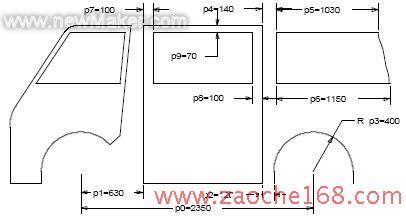设计意图:当改变轴距后,自动调整车身长度,自动调整乘客门的宽度和位置,自动调整乘客门车窗和密封条的尺寸,并保证乘客门的车窗边框宽度不变,自动调整后轮轮罩开口位置和后侧窗的大小和位置。