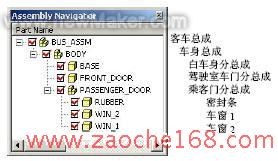(2) 定义控制结构关系 其次定义车身各大总成和零部件间的控制结构关系(类似于装配结构关系),这种控制结构关系使得产品设计的规则和标准具体化。