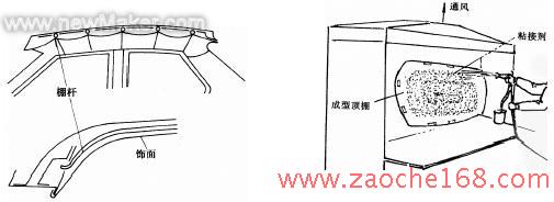 成型硬顶的安装分为粘接式与镶嵌式两种。