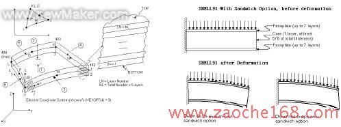 图16 shell91 单元 图17 shell91 单元的sandwich 特性
