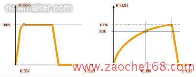 另外,从两种焊钳的时间压力曲线(见图3)比较中可以看出:电极压力由0升高到100%焊接所需压力值,伺服驱动系统比汽缸驱动系统快5倍。设置好的压力值在焊接过程中不再变化,从而保证很高的焊接质量。