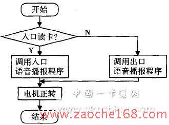 控制闸杆机的起落即是控制闸杆机的直流电机的正反转,通过单片机控制口输出高低电平配合继电器工作,直流电机电机两端加正反电压可以实现正反转。对于时间的记录,这里选用DS1302日历芯片,DS1302可以对年、月、日、周、时、分、秒进行记录.可接入后备电源,在主电源关闭的情况下也能始终保持连续工作,单片机SPCE061A可以随时读取当前的时间。与上位机的通信利用SPCE061A的通用异步串行通信模块(UART),它提供了一个全双工标准接口,借助于IOB口的特殊功能和UART IRQ中断实现与上位机配置的RS一232串行通信接口COM链接,实现了数据的及时传输。另外,语音提示部分利用SPCE061A的语音处理优势。利用 SPCE061A的语音压缩算法库和内置的DAC等,即可实现清晰的语音播报功能,无需外加语音芯片。