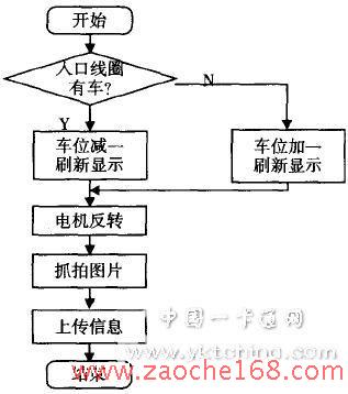 整个停车管理系统示意图如图1所示,信息显示牌为LED显示屏,显示当前时间及车位信息。当有车进入时,司机进行刷卡,刷卡信号由控制器读入,控制闸杆机抬起,语音提示“欢迎光临 ”,当地感线圈检测到车辆进入时,更新车位信息,抓拍车辆图片,闸杆机下落;同样,当车辆驶出,司机刷卡,控制闸杆机抬起,语音提示“谢谢光临,当地感线圈检测到车辆离开,抓拍车辆信息,闸杆机下落并更新车位信息。而车辆的图像信息、IC卡数据信息的处理都将由值班室的上位机完成。