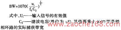 LM567的第5、6脚外接的电阻、电容决定了IC内部压控振荡器的中心频率,fo=1/1.1RC。第1、2脚通常图4锁相环电路是分别对地接电容,形成输出滤波网络和环路低通滤波网络,其中第2脚所接电容决定锁相环电路的捕捉带宽,带宽的理论值可用此公式计算: